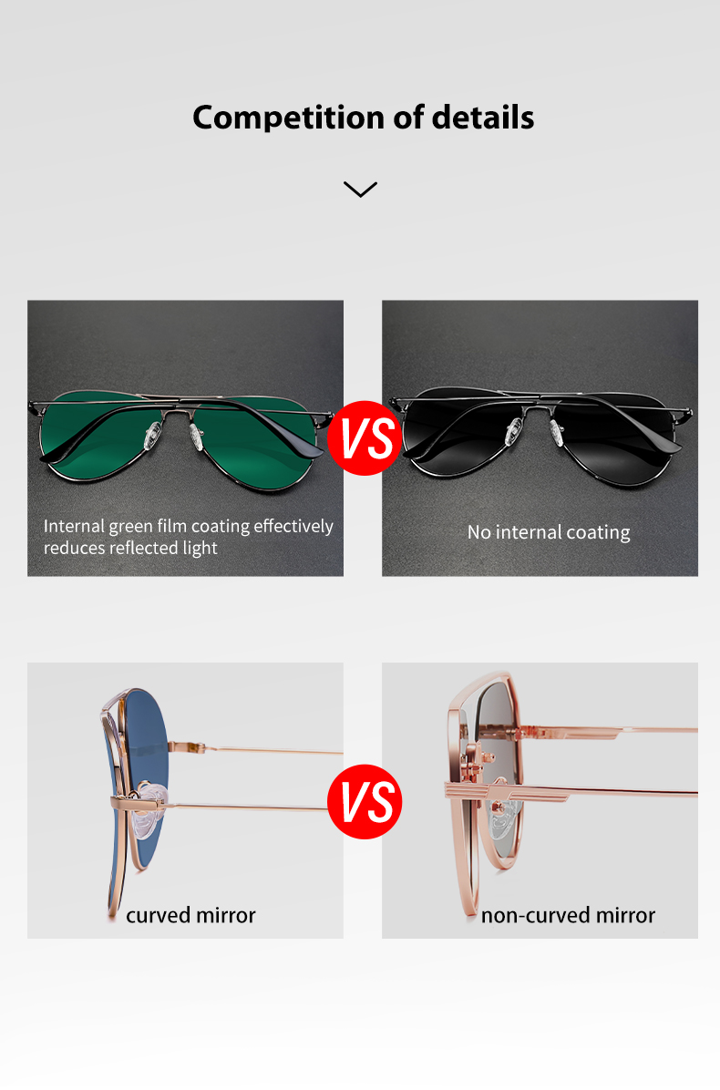 2024 men women fashion Sun glasses Green Film Plated luxury Anti glare Reflective pilot designer Concave Sunglasses for Driving